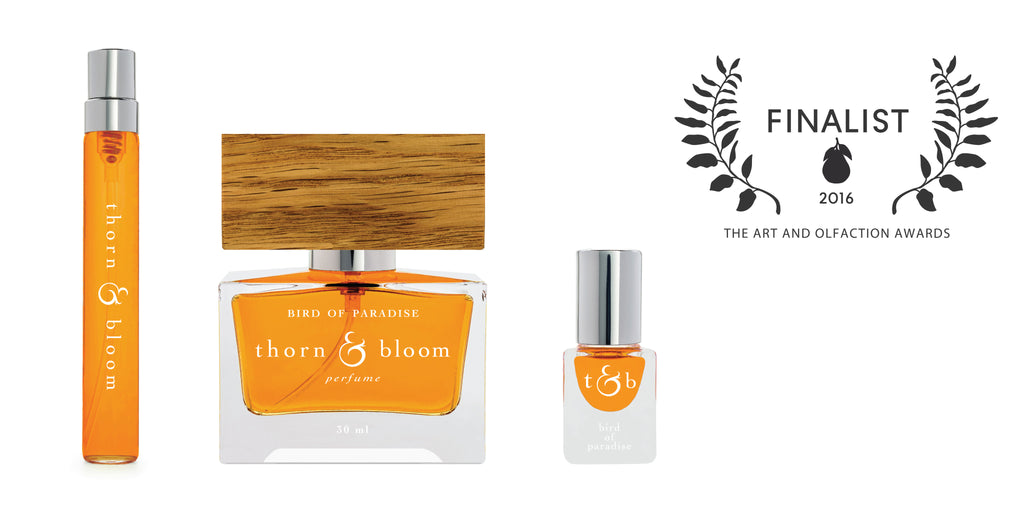 We're excited to announce that our Bird of Paradise is a finalist for the 2016 Artisan Art + Olfaction Award. We'll be competing against 9 other amazing perfume brands and will be able to meet them all at the awards ceremony in L.A. on May 7th. This honor is especially exciting for a 100% natural perfume house, as blending with botanical aromatics often represents a unique challenge to perfumers.
